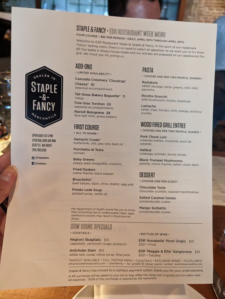 Welcome to Staple & Fancy, an exquisite Italian dining experience located in the heart of Seattle’s vibrant Ballard neighborhood. This trendy spot combines a casual atmosphere with a touch of elegance, perfect for dinner with family or friends.